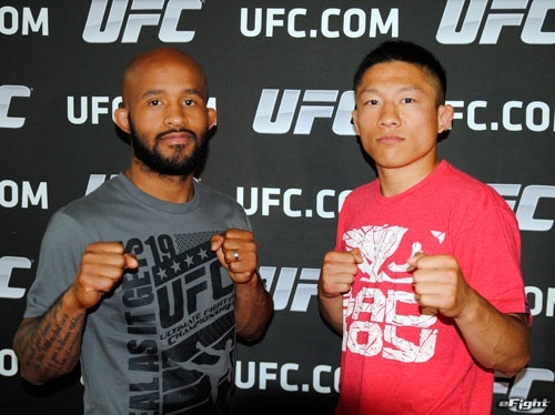 昨年5月にUFC世界フライ級王者ジョンソン(左)が来日。激闘を演じた堀口(右)と再会し、再戦を誓っている