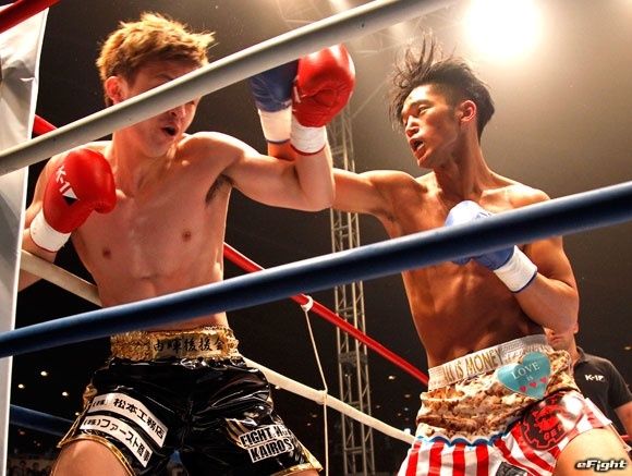 2015年K-1甲子園-65kg王者・篠原悠人(右)