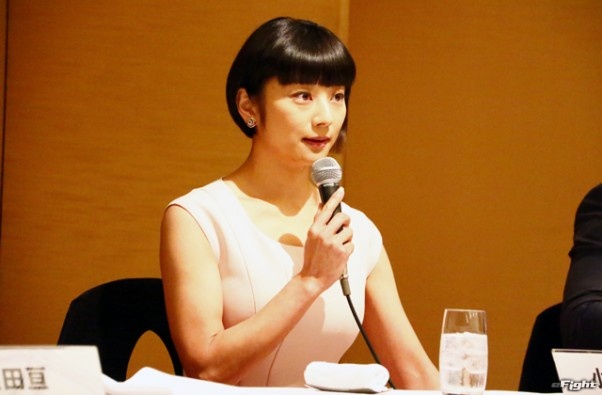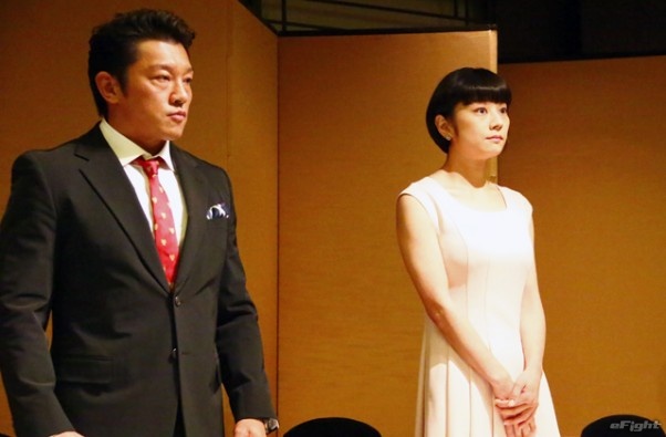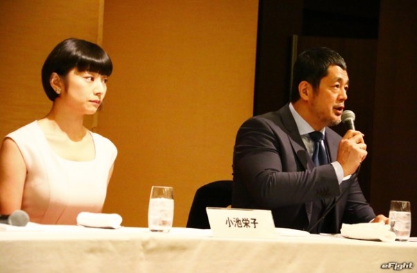 坂田vsマッハの実現までの経緯を説明する高田統括本部長(右)