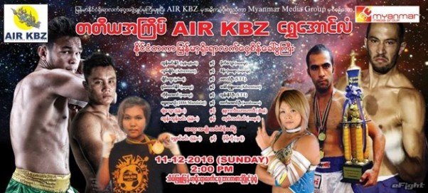 女子プロレスラーの高橋奈七永(右から3番目)がラウェイに挑戦する大会のポスター