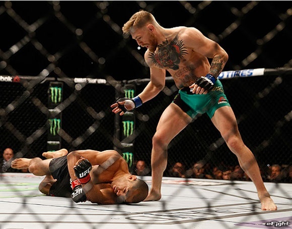 2015年最大の決戦と謳われたフェザー級王座統一戦で、マクレガー(右)にわずか13秒でKO負けを喫したアルド(左)