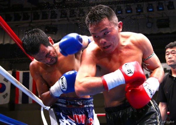 世界最高峰ラジャダムナンスタジアム王座を目指す緑川(右)。ここで負けるわけにはいかない