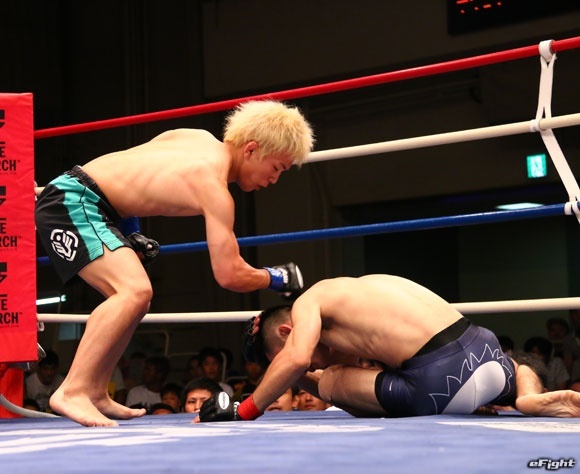 昨年7月の修斗世界フライ級タイトル戦で、当時の王者・内藤のび太(右)を追い込む場面もつくった澤田(左)