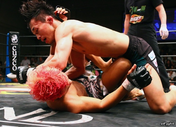 和田(上)は6月の第4代DEEPフライ級王者決定戦で、柴田“MONKEY”有哉(下)を血祭りにあげ、王者返り咲きを果たした
