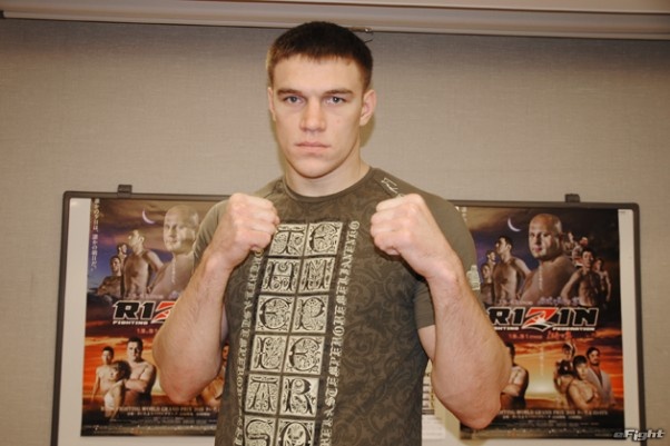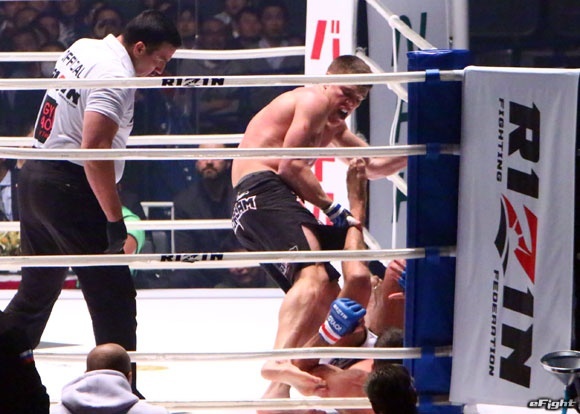 初参戦で元UFCファイターのゴラン・レリッジ(下)をサッカーボールキックと踏みつけの連打で初回KOしたネムコフ(上)
