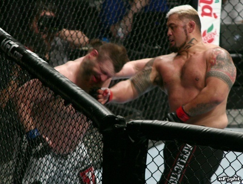 今年5月のオランダ大会でアンドレイ・オルロフスキー(左)にヒザ蹴りを叩き込むアリスター(右) PHOTOS=Zuffa, LLC (c) /GettyImages (c)