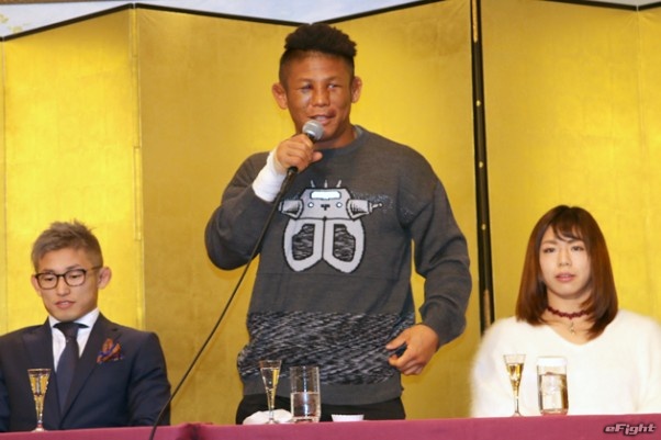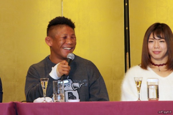 クルックシャンク(左)と果敢に打ち合い、顔面を血に染めた北岡(右)
