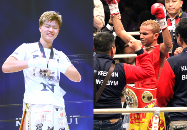 長いリーチを生かしたパンチで井岡を攻めるアムナット。リオ五輪にも出場した