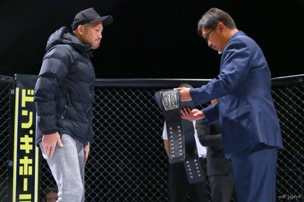 昨年12月17日のDEEP大会で横田(左)はベルトを返上した