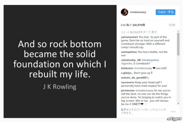 ラウジーが投稿した画像。『ハリー・ポッター』作者J.K.ローリング氏の名言が記されている(ラウジーのインスタグラムより)