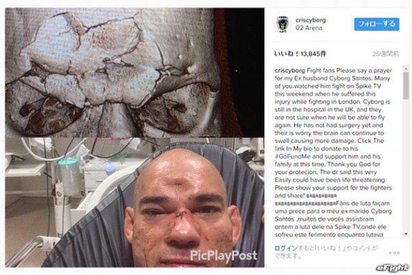 元妻のクリスチャン・サイボーグが自身のSNSに公開した骨折後のエヴァンゲリスタ・サイボーグとそのレントゲン写真(クリスチャンのインスタグラムより)