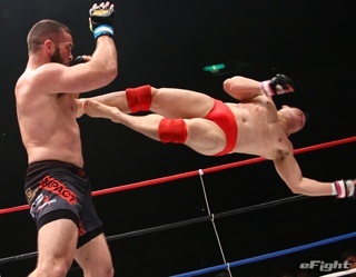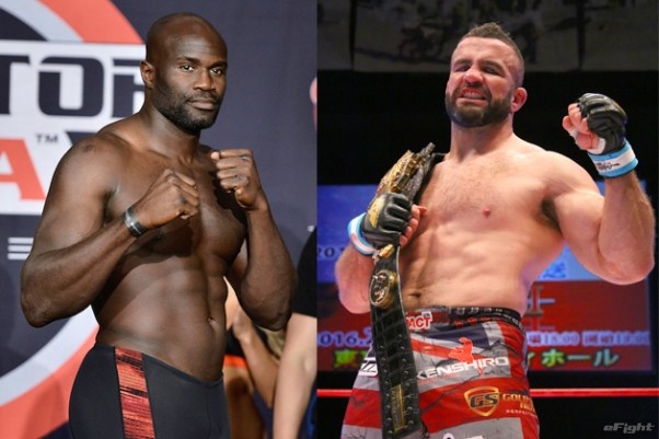 IGCヘビー級トーナメント1回戦でミノワマン(右)と対戦したトンプソン(左)