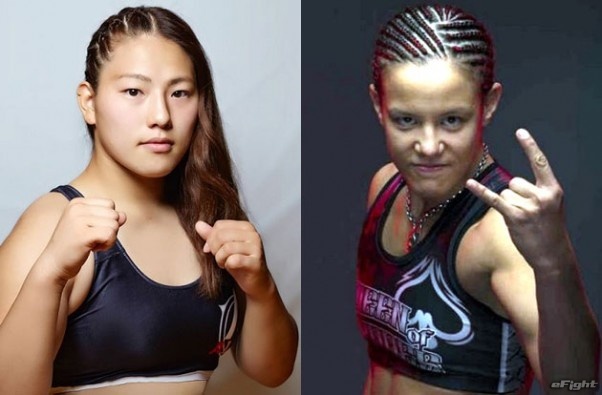 プロデビュー2戦目にして元UFCファイター・ベイズラー(右)との対戦を迎えたKINGレイナ(左)