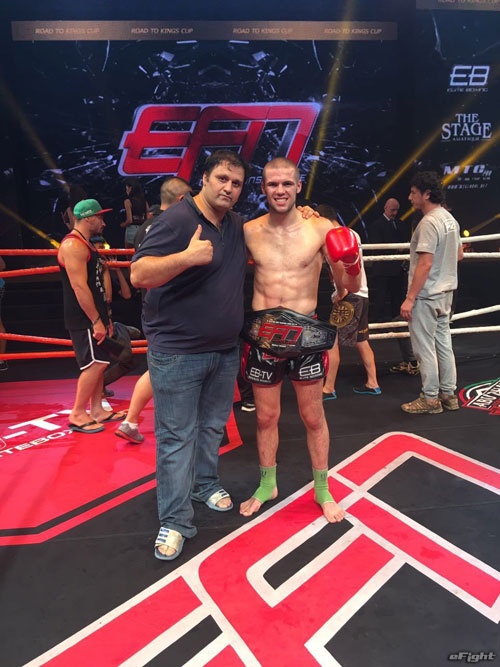 ラジャ王者T-98(左)の2017年第一戦はタイ在住のウクライナ人選手サーシャ(右)との対戦となった