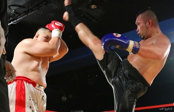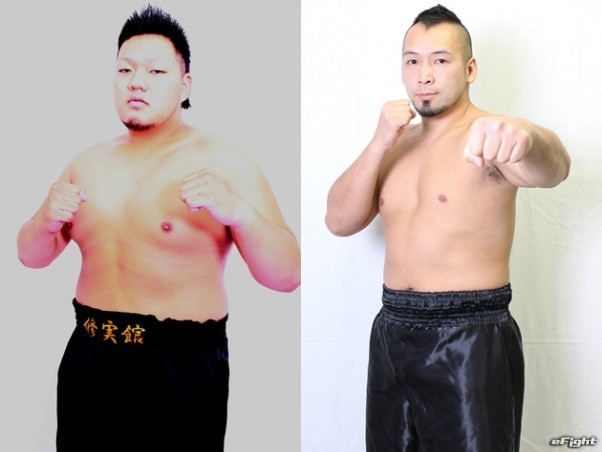 J-NETWORKヘビー級次期王者挑戦者決定トーナメント決勝戦で対戦する坂本英則(左)と山中政信(右)