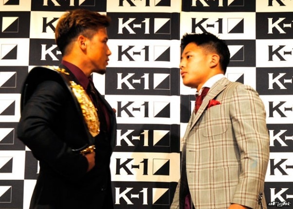 昨年11月の対戦カード発表会見で、激しい睨み合いを繰り広げた卜部(左)と大雅(右)