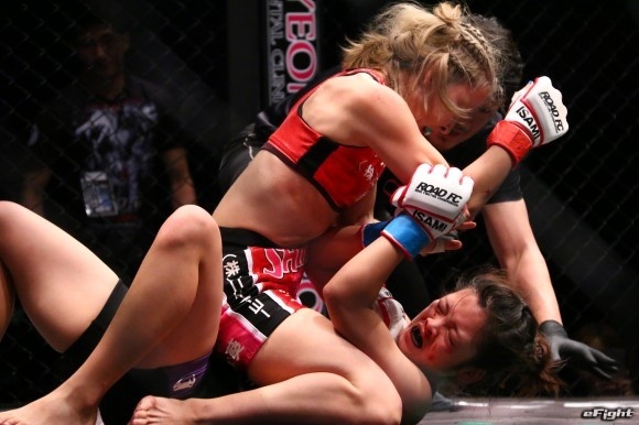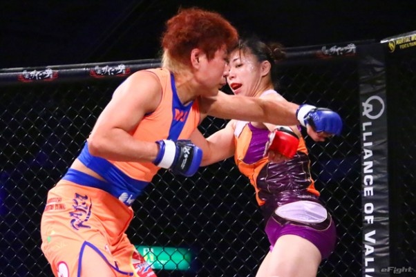 中井りん(右)にボクシング仕込みの強打を振るうライカ(左)
