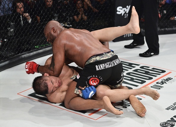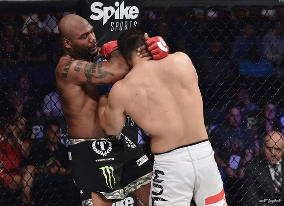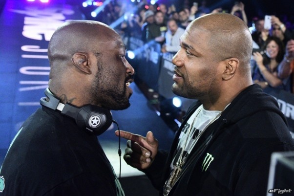 1月21日に開催された『Bellator 170』の会場で、火花を散らしたジャクソン(右)とモー(左)