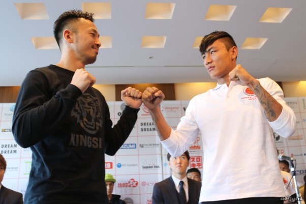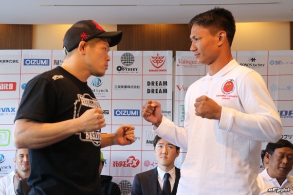 第4試合で対戦するFSA拳真館の山崎泰幸(左)と37戦無敗のミャンマー人選手スェ(右)