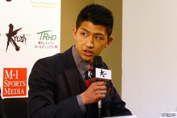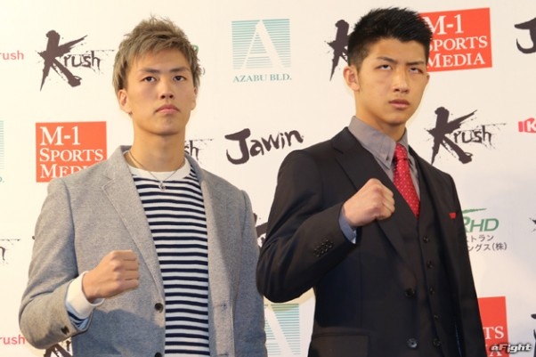 第5代Krush -60kg王座決定トーナメント・準々決勝で激突する朝久(右)と佐野(左)