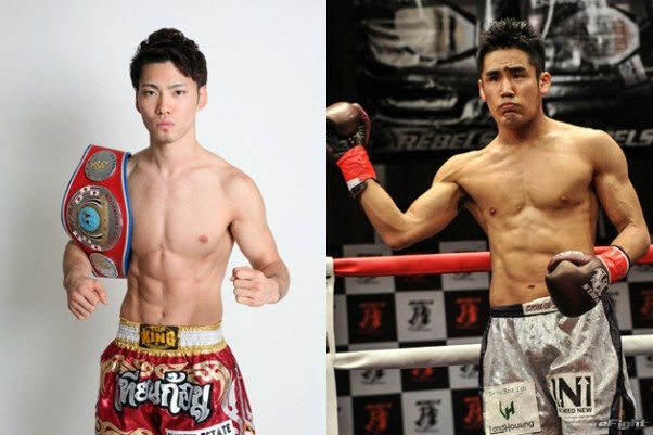 WPMF日本スーパーライト級王者・潘(左)、元REBELS-MUAYTHAIスーパーライト級王者ハチマキ(右)