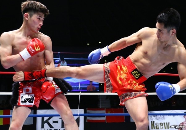 初代ライト級王座決定トーナメント決勝戦で激突したウェイ・ルイ(右)と平本蓮(左)