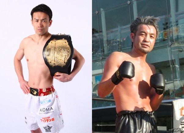 かつて全日本キックを盛り上げた寺戸(左)と小林(右)が対峙。果たしてどんなエキシビションマッチとなるのか/写真C=寺戸(Good Loser)、小林(Kick Boxing ZONE)