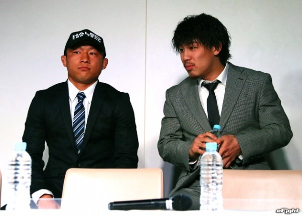 今大会に初参戦する元UFCトップファイター堀口(左)とは元同門