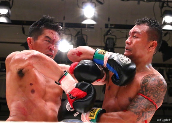 宍戸(左)をヒジによるカットで葬ったジャオウェハー(右)