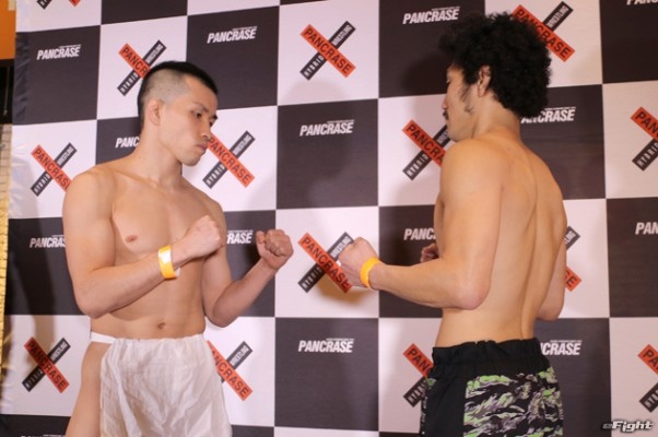 計量をクリアーした王者・神酒(左)と挑戦者マモル(右)