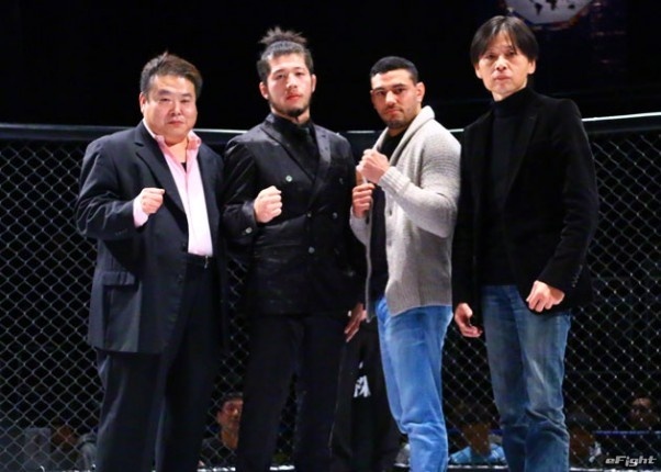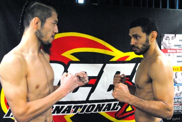パンクラスからの刺客ガイ・デルモ(右)をDEEP代表として迎え撃つ中迫(左)