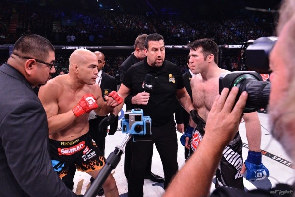 1・21大会でティト・オーティス(左)と睨み合うソネン(右)は、この試合がBellatorデビュー戦であった