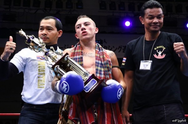 欧米人のフィジカルの強さに本場仕込みのムエタイテクニックを兼ね備えたコー(右)。悠矢(左)の強打を封じて勝利を収めていた