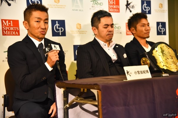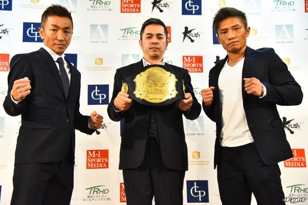 若い選手が活躍するKrushの中では、珍しいベテラン同士のタイトルマッチとなった小宮(左)と中澤(右)