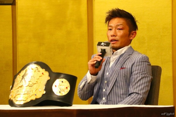 激闘の傷跡が顔に残る中澤だが、戴冠から一夜明けて安堵の表情を浮かべた