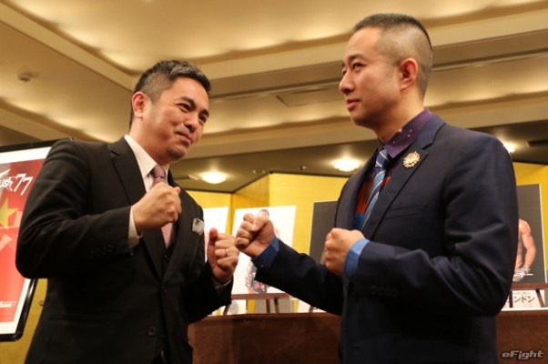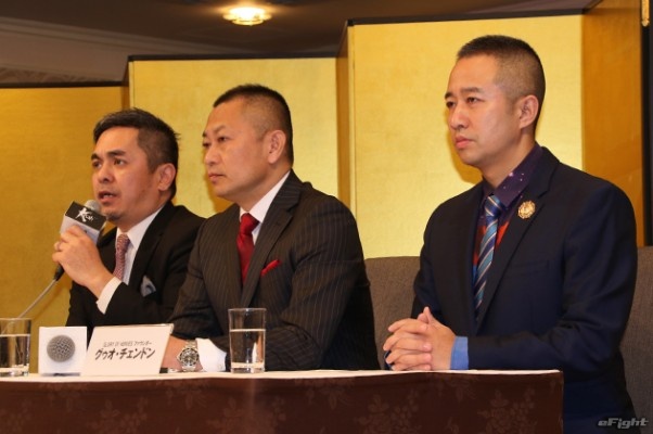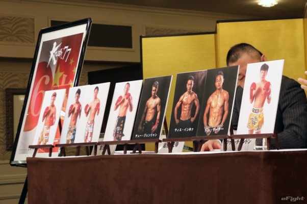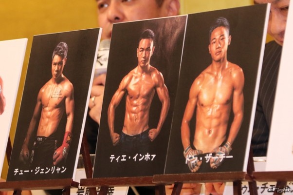注目選手として紹介された(左から)チュー・ジェンリャン、ティエ・インホァ、ドン・ザーチーの3選手。屈強な肉体が目を引く