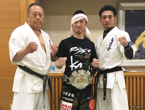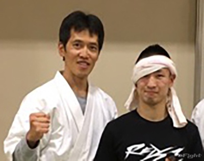 空手時代に神戸支部で指導を担当した播戸一幸支部長(左)と小西