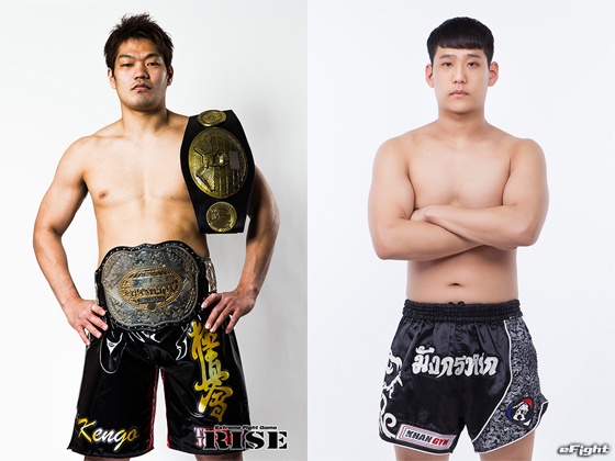 RISEとSBのヘビー級二冠王・清水賢吾(左)が韓国のヤン・ジェグン(右)を相手に復帰戦に臨む