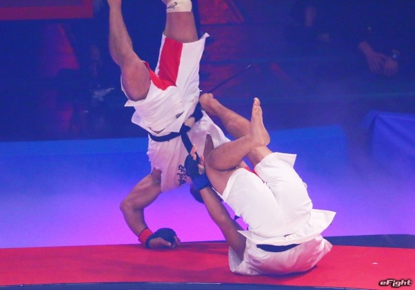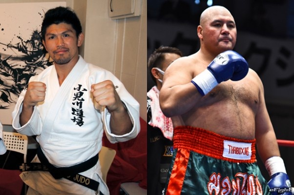 普段は65kgで試合をしている小見川(左)が115kgのキックボクサー楠(右)と対戦する