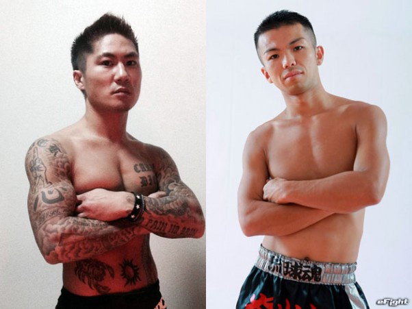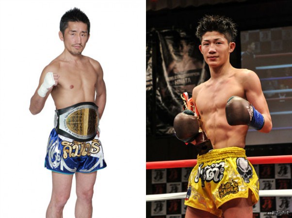1975年生まれの王者・松崎(左)と2000年生まれの挑戦者・安本(右)の年齢差25歳のタイトルマッチ
