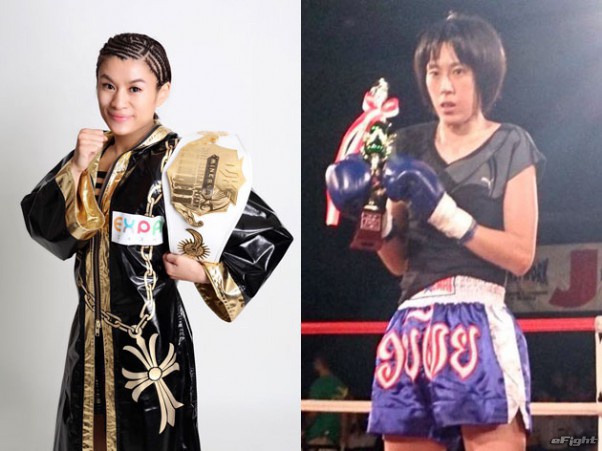 NJKFとKING OF STRIKERSの二冠王となった杉(左)が177㎝の長身を誇る和乃(右)とノンタイトル戦