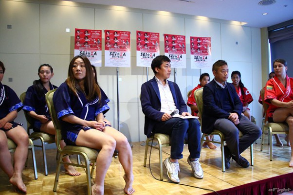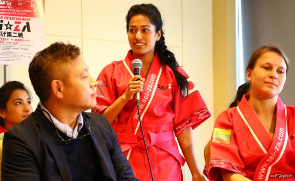 (左から)チームSEI☆ZAの先鋒ラジーナ・ビスタ、大将タバタ・ヒッチ、中堅ラダ・マナンダー