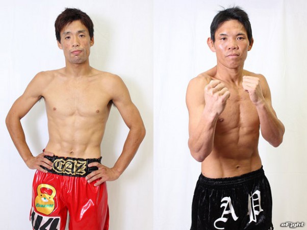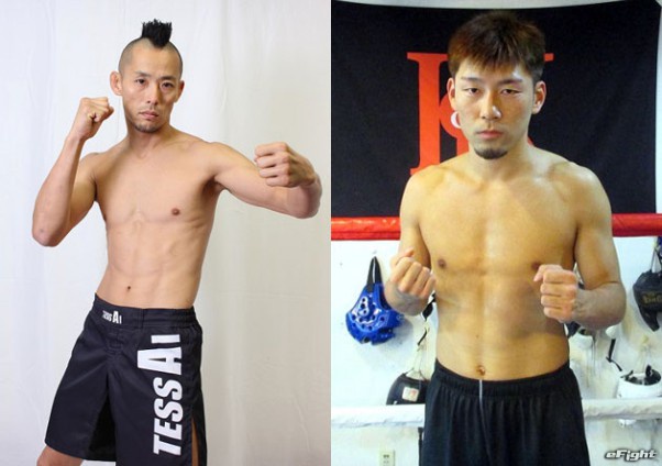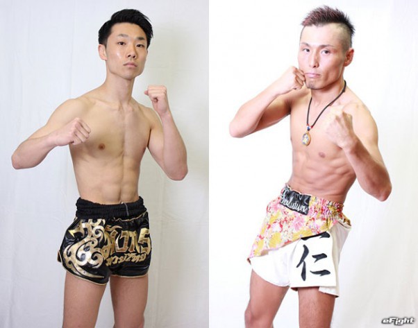 J-NETWORKフェザー級次期王者挑戦者決定トーナメント1回戦、SHUN(左)vs一仁(右)