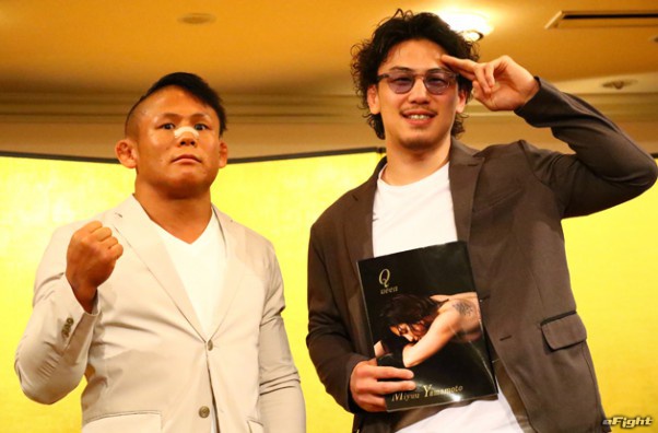 スペシャルワンマッチで対戦する北岡悟(左)と矢地祐介(右)