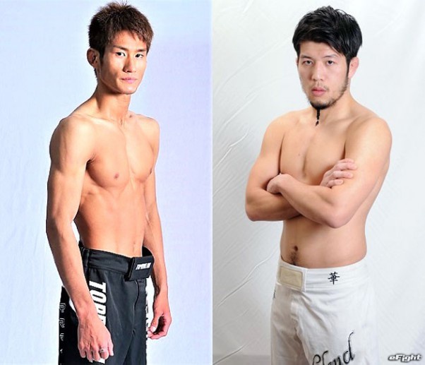 石司(左)と上迫(右)がフェザー級王座決定戦で激突