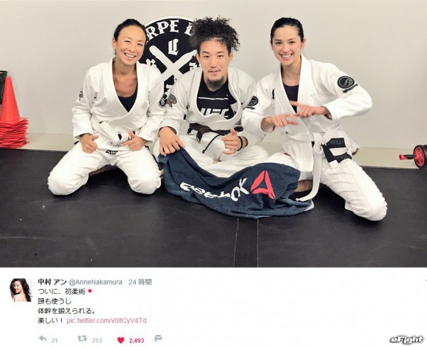 柔術に初挑戦したタレント・女優の中村アン(右)
