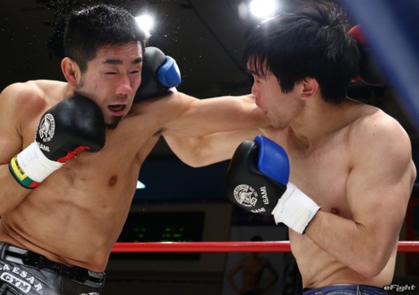 今年2月の北斗(右)戦では激しい打ち合いを繰り広げた末、王座陥落した坂本(左)