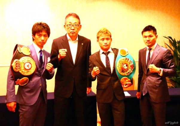 (左から)田口、渡辺会長、京口、河野