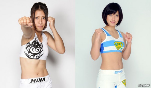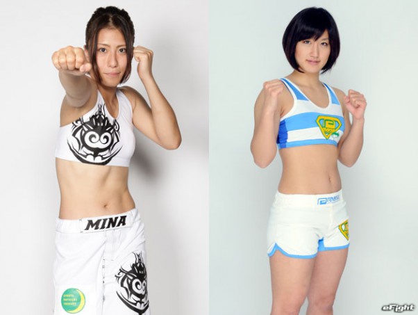 女子離れしたパンチ力を持つ未奈(左)と、MMAファイターでパワーのある杉山(左)が対戦する