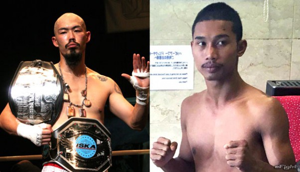 ISKAムエタイインターコンチネンタル王者としてペットマハーラート(右)を迎え撃つ宮島(左)